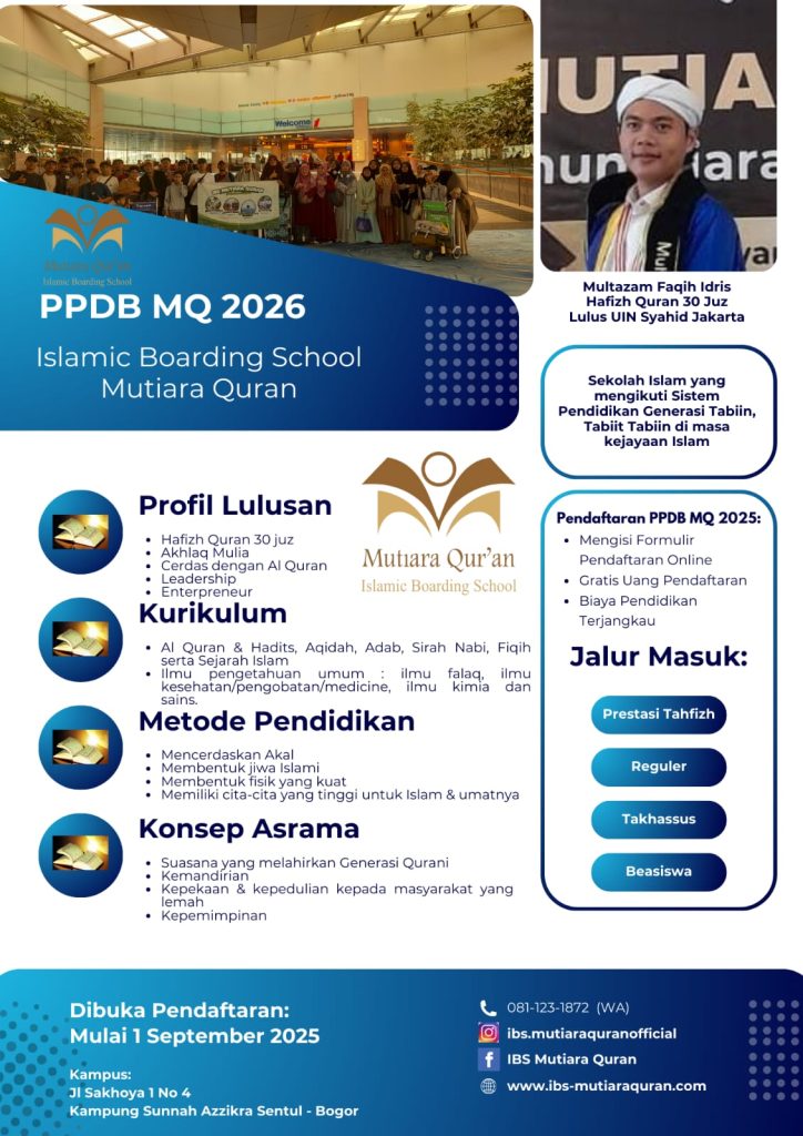 Afra Raida Kemala Lubis, santri kelas 8 IBS Mutiara Quran telah berhasil menyelesaikan setoran terakhir 30 Juz pada hari Kamis, 16 Oktober 2025 di Mesjid Nur Abdillah Anyer Banten Afra sudah terbiasa bangun malam dengan ibadah sholat Tahajjud setiap hari dan tilawah Al Quran. Ibadah menuju khatam hafalan Al Quran Selanjutnya…